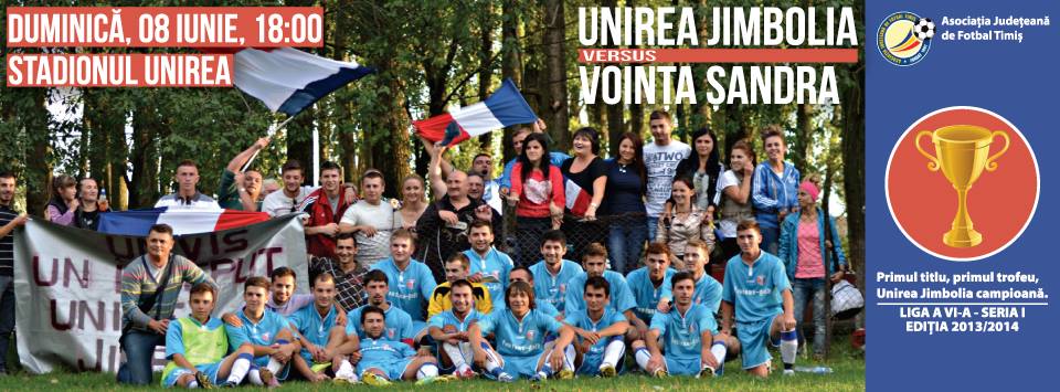 În Cupa României FC Unirea nu a reușit să treacă de turul 2. Pe 9 martie 2014, pe stadionul Unirea din Calea Moților, formația jimboliană a întâlnit echipa legendară Ripensia Timișoara (reînființată în 2012, și proaspăt promovată în liga a IV-a), în fața căreia a cedat cu 0:3. În campionat însă FC Unirea a confirmat cu prestații bune și cu un avans mare față de a doua clasată în mod convingător speranțele și așteptările fanilor. Pe 8 iunie, după încheierea ultimei etape a sezonului 2013/14, echipa a putut sărbători împreună cu numeroșii spectatori-suporteri în mod oficial promovarea în liga a V-a. Primul țel ambiționat este atins și visul Unirii Jimbolia poate continua.